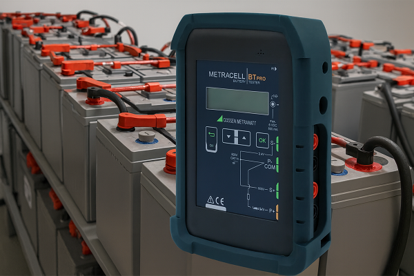 The METRACELL B100B BT PRO is a mobile and multifunctional test device for the testing and maintenance of battery systems and uninterruptible power supplies (UPS), in computer centres, hospitals, transport, power stations, etc.