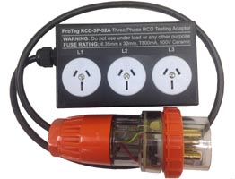 The ProTag RCD-3P is a universal three phase RCD testing adaptor that can be used with any brand of RCD tester or portable appliance tester with RCD test function.