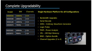 MSO5000 Series Bandwidth upgrades from 100 MHz to 350 MHz.