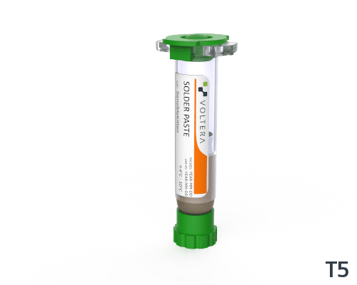 Just snap on this RoHS solder paste cartridge and the V-One will dispense solder paste onto the pads of your board. Solder paste can be dispensed onto your V-One printed boards, or prefabricated circuit boards.