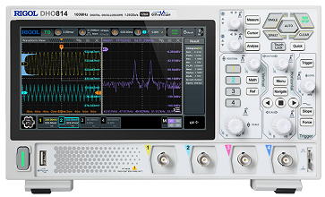 The DHO-800 series is RIGOL's new high-performance 12bit economical digital oscilloscope. Though compact in design, it offers truly superior performance. It features 12bit resolution, a capture rate up to 1,000,000 wfms/s (in UltraAcquire Mode), 25 Mpts memory depth, and low noise.