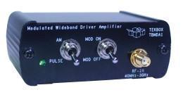 The TBMDA1 modulated wideband driver amplifier is designed in order to create an inexpensive signal source for immunity testing of electronic building blocks and products. It is designed to be driven by the tracking generator output of spectrum analyzers. With its gain of 22 dB and 1dB compression point of +22dBm, it can boost the output power of a tracking generator up to 150mW. The TBMDA1 is ideal to drive Tekbox near field probes in order to find the sensitive spot of an electronic circuit or to create electric fields up to 50V/m when driving the Tekbox TEM Cell TBTC1, 25V/m when driving the TBTC2 or 18V/m when driving the TBTC3. Test signals for immunity testing can be CW, AM or PM. Consequently, the TBMDA1 provides built in modulation capability to generate 1kHz AM or PM signals. In PM mode, the TBMDA1 can also generate a 217Hz Signal with 12.5% duty cycle in order to simulate mobile phone TDMA noise.
