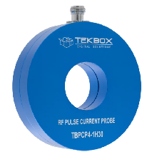 The TBPCP4-1H30 is an RF pulse current monitoring probe. The probe has a 3 dB bandwidth from 1 Hz to 30 MHz and is characterized over the frequency range from 0.1 Hz to 100 MHz. The TBPCP4-1H30 is typically used for surge or RF pulse current monitoring applications in the time domain, in contrary to RF current monitoring probes designed for EMC applications, which are typically used for measurements in the frequency domain. The aperture of the RF current monitoring probe is 46 mm. The transfer-impedance is -26 dBΩ / 0.05 V/A when terminated with 50 Ohm and 0.1 V/A with a high impedance load. The typical 3dB bandwidth is 10 Hz to 30 MHz.
